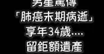 他深夜走了!男星驚傳「肺癌末期病逝」 享年34歲.... 留鉅額遺產!