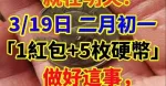 就在明天! 3月19日「二月初一」準備「1個紅包+5枚硬幣」做好這事,招橫財走好運!