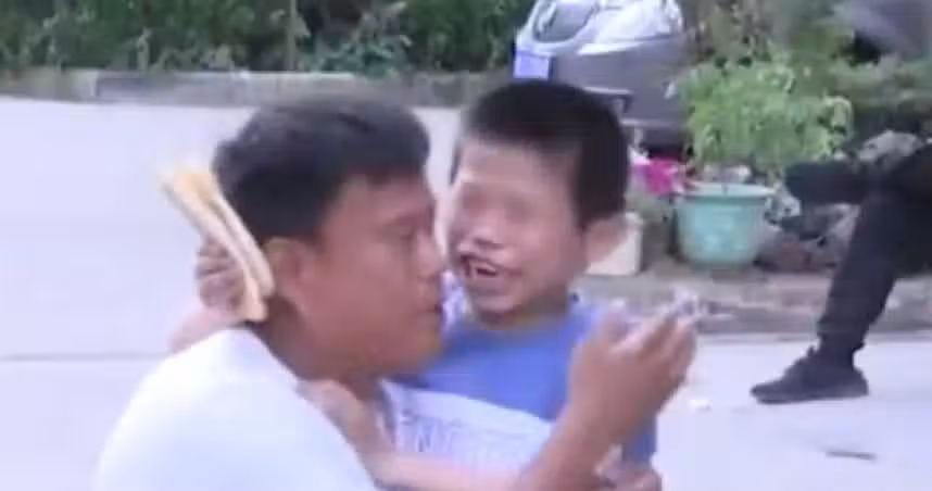 龐先生想著趕緊把兒子接回來,可是當他見到兒子那一刻,直接被眼前的一幕嚇傻了。只見兒子滿身傷痕、雙腿殘疾,舌頭也沒了,說不出整句話來,只能發出單音節的嘶啞聲響。雖然兒子今年16歲了,但是因為長期的營養不良,非常的瘦弱,身高和智力也只有幾歲的孩子一般。看到兒子這樣,父親心如刀絞,淚崩:「對不起,你受了太多的苦,對不起,都是我的錯...」