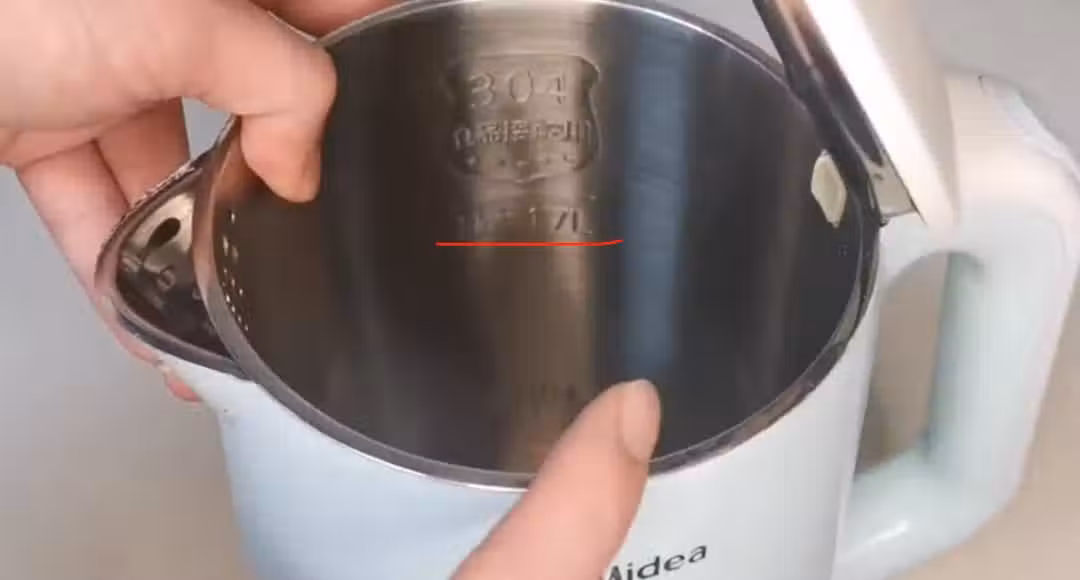 要知道水壺有個最高水位,如果說家的水超過了最高水位的話,首先水在沸騰的時候,就會很容易從蓋子這些縫隙溢出來。
