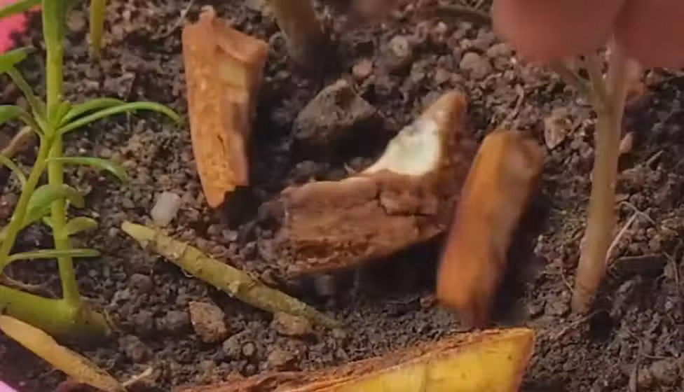 可以用剪刀把石榴皮剪成碎小的各種形狀,然後把它埋在土壤里。