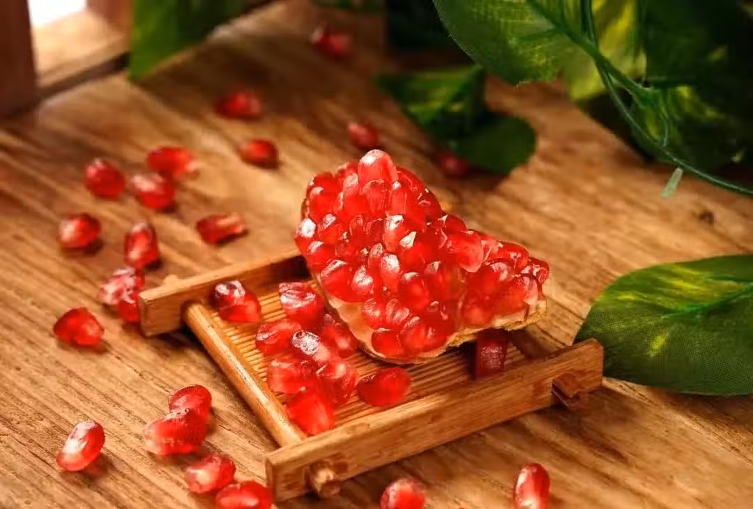 石榴不僅好看,還很好吃,它的味道酸甜適中,口感清爽多汁,吃起來非常解渴。 此外,石榴還有不少健康功效,比如美容護膚、降血糖、抗炎等。