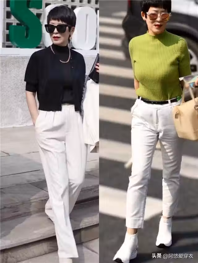 夏季選擇這種西裝面料的闊腿褲也是很不錯的方式,相比普通的牛仔面料,這種西裝的面料看上去更有質感更高級,遮肉顯瘦效果是非常強的,穿起來可以起到一定的延長腿長的效果,又有很高級的質感,可以說是顯瘦時髦兩不誤。