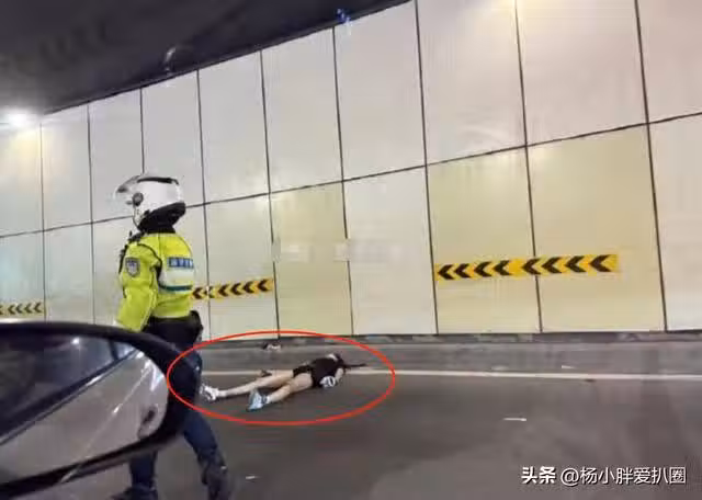 查看現場的畫面也不難看出,當時隧道內標記了彎道,美女躺在路沿邊,已經一動不動。交警為確保其他人安全正在疏通,她孤零零的躺在那裡看起來非常淒涼......
