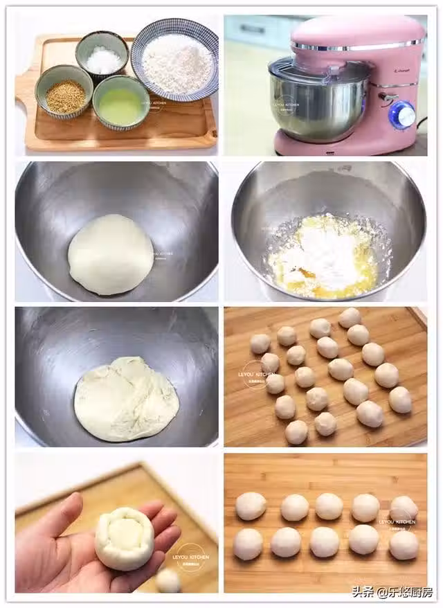 第六步:把油皮和油酥分別分成10個等大的小劑子,如圖。