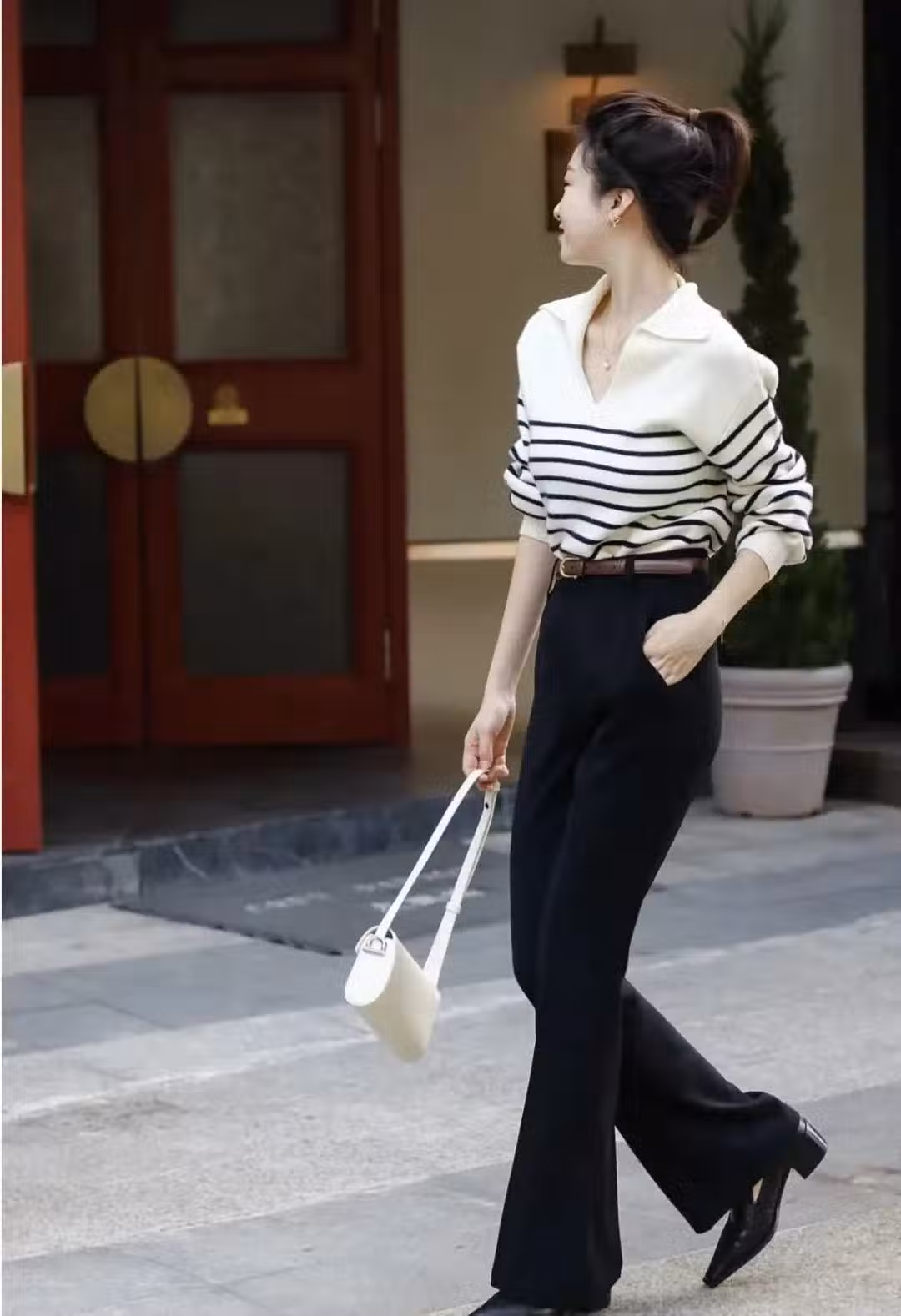 針織衫+闊腿褲,今年秋天最流行的搭配