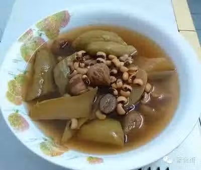 材料:合掌瓜1斤,無花果4顆,紅棗8顆,百合2兩,眉豆1兩,陳皮1片