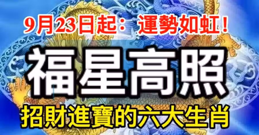9月23日開始,哪些生肖運勢如虹,會福星高照,招財進寶哦。