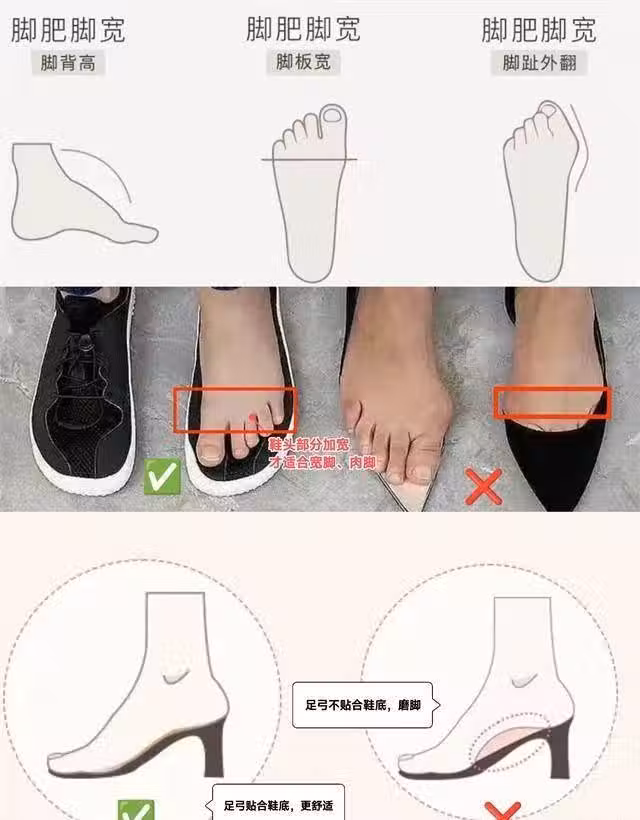 02.不穿足底不貼腳、鞋面擠腳的低跟鞋