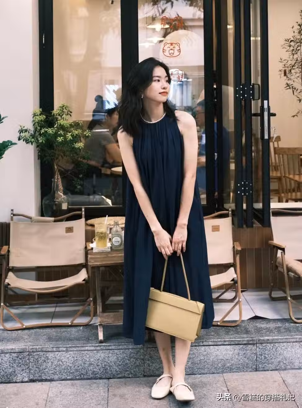 因為露胳膊的原因,所以對於很多腿粗的女性就很有幫助,將整體的重心放在了上半身,讓造型顯得輕盈又具備顯瘦的功效;由上至下逐漸變寬的款式,對於下身的包容性也很高。