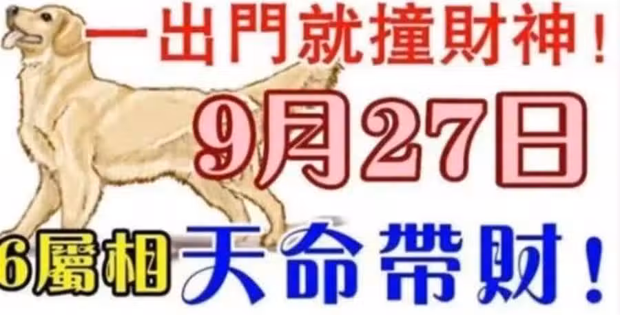 9月27號,七生肖一出門就撞財神!天命帶財!