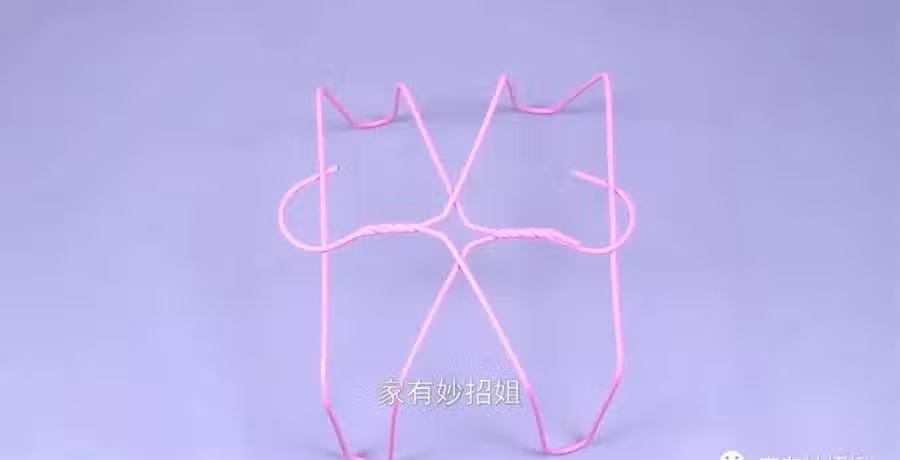 接著將兩個衣架交叉的架在一起,然後在兩個衣架的交叉點,用扎帶給它固定住,這樣就改造完成了,來看看它有什麼作用吧。