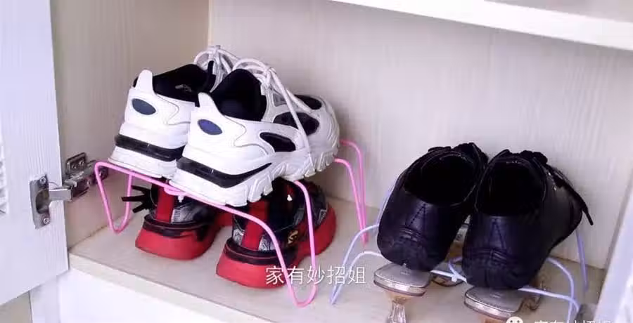我們家裡的鞋子太多,鞋櫃放不下怎麼辦,其實我們就可以將改造好的兩個衣架當做鞋架來使用,將衣架放進鞋櫃里,衣架的底部可以放雙鞋,上面也可以放雙鞋,原本放一雙鞋的位置現在就可以放兩雙鞋了,大大的節省了鞋櫃的空間,既方便又實用。如果今天的文章對您有幫助,那就點一個關注,點一個贊,感謝您的支持。
