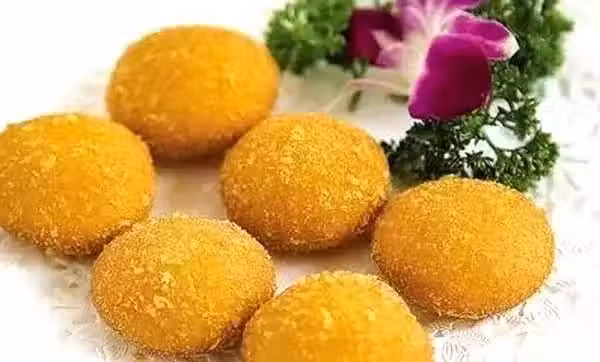 1、將南瓜洗淨,去掉皮和瓤後,切成塊末,放入蒸鍋中蒸熟搗成泥,加入麵粉、然後做成大小同一的圓餅,再沾上麵包糠待用。