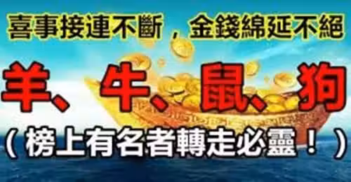 恭喜了7大生肖,在未來三天( 11月20~23日)即將有一筆橫財,準備好收錢吧