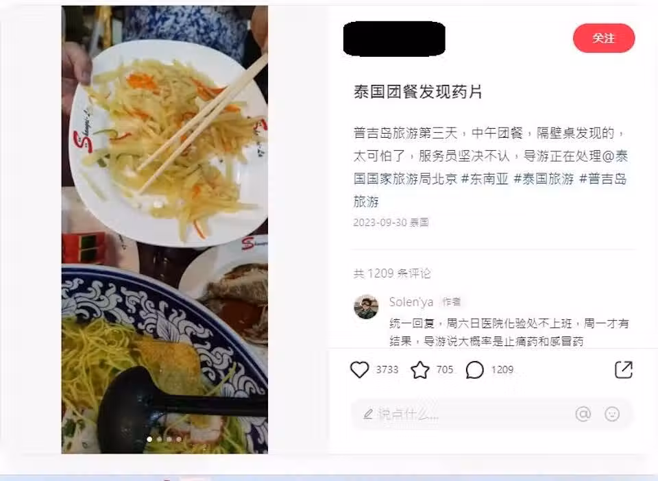 近日,更有中國網民在社交平台上發文,指日前跟團去泰國普吉玩,用膳時隨碟附送了兩粒藥丸,網民擔心是KK園區新招擄人方法,事件及相片在網絡上瘋傳。