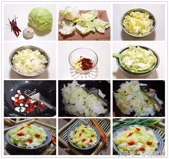 第八步:將圓白菜放入鍋中,大火煸炒。