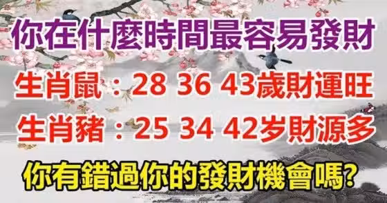 別再說富人越來越富、窮人越來越窮,你想過有一天你也能冠上有錢人的名號嗎?別對自己沒信心,雖然機遇也不是經常都有,但是手氣好的時候不出門都有錢進口袋,當然運氣差的時候也難免比較辛苦。那麼問題來了,你發財機遇在什麼時候出現呢,快來看看你在什麼年齡最容易發財吧。