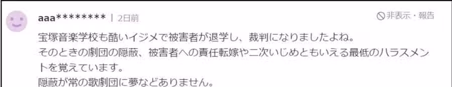 寶塚音樂學校霸凌也很嚴重,受害者退學了,還打了官司。