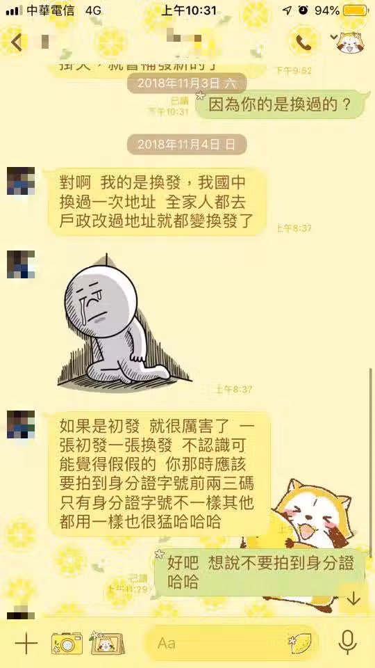 接著原PO也貼出和這位友人的「身分證合照」,上頭兩人的身分證前6碼分別是「N12592」和「G12221」,證明完全是不同人!