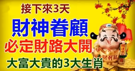 接下來三天,財神眷顧,必定財路大開,大富大貴的三大生肖!