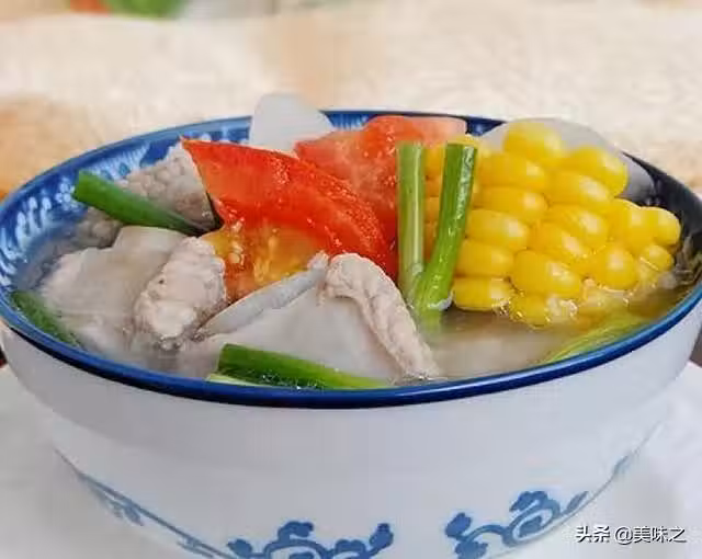 4、加入切好的蓮藕快和玉米段繼續煮半小時左右。