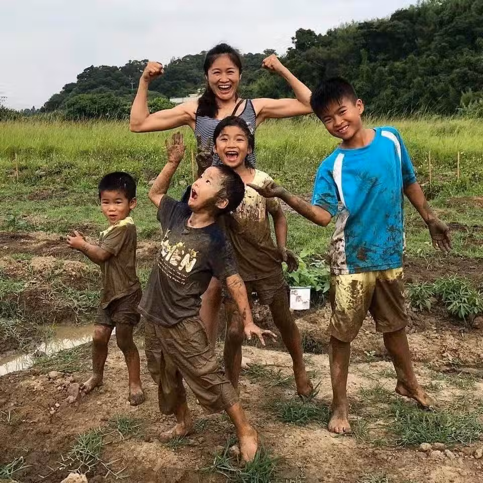 最後,她提醒「放養並非放生」,該有的規矩、團體規范、禮儀以及尊重,都要傳授給孩子,在玩樂時,也不要怕髒、怕操,適度放手讓孩子們去體驗,也是父母該學習的課題,「有操到,代表孩子晚上可以秒睡,有髒到,則代表孩子真的有認真玩!」她認為,只要肯放手,越讓孩子全心參與其中,那麼他們學到的東西就會更多,「媽媽是全世界最棒的職業,我一直很樂在其中,也很欣慰孩子各個都健康、懂事。」