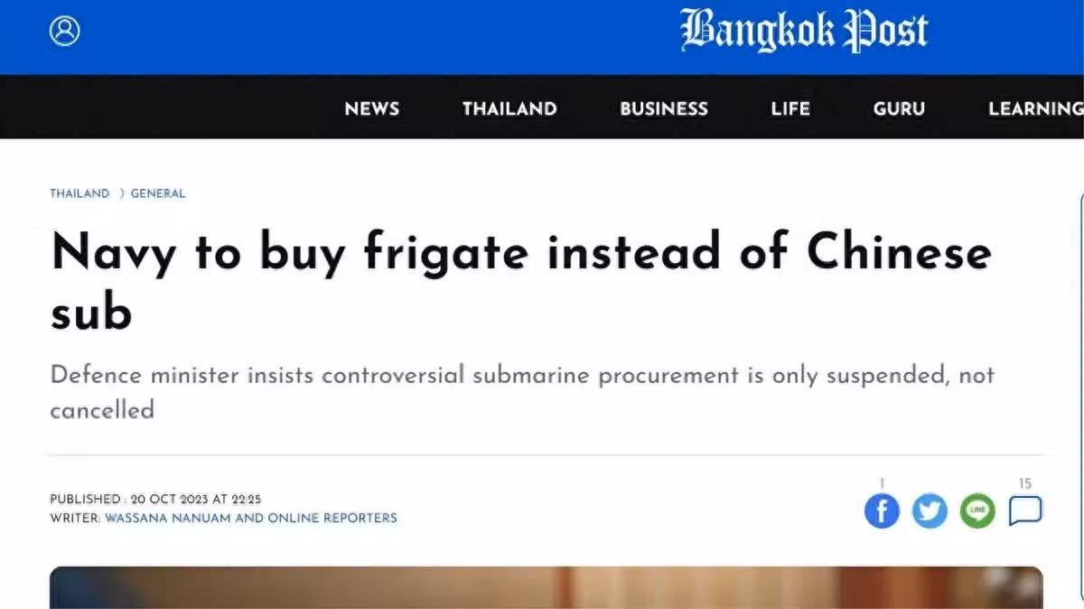 不久前,中國海軍艦艇編隊前往泰國參加軍演,並且帶去一艘早期型039潛艇後,外界紛紛認為兩國間的潛艇軍貿問題終於解決,價值近7億美元的後兩艘潛艇訂單,應該很快進入建造階段。然而,數日前《曼谷郵報》的一篇文章,指出事情好像又有了新的變化——泰國海軍暫時擱置了潛艇採購,轉而計劃從中國引入一艘護衛艦。
