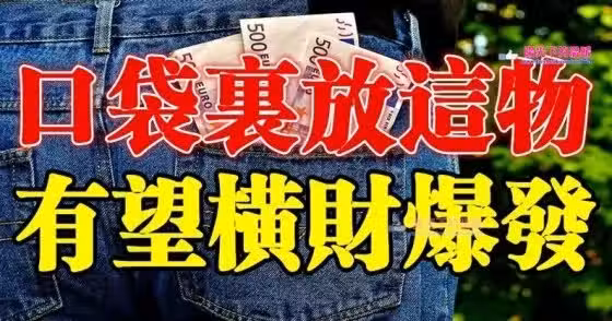 你可以選擇在褲子的後口袋裡放六枚硬幣,六無論在風水還是民間都是個很吉利的數字。而硬幣屬金,放在後袋有「厚財在後」之意。配合六六大順的吉祥含義,對你的財運將會很有幫助。