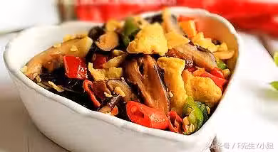 2、平底鍋內放適量的花生油,油熱後下雞蛋液快速滑散後盛出。再放一點點的花生油,放入蒜瓣爆香。放切好的香菇條。放杭椒,加入一大勺的白開水,中小火翻炒至香菇熟透。調入半勺鹽和一勺生抽,翻炒均勻。放入炒好的雞蛋,小火翻炒1分鐘至雞蛋入味即可關火、盛出。