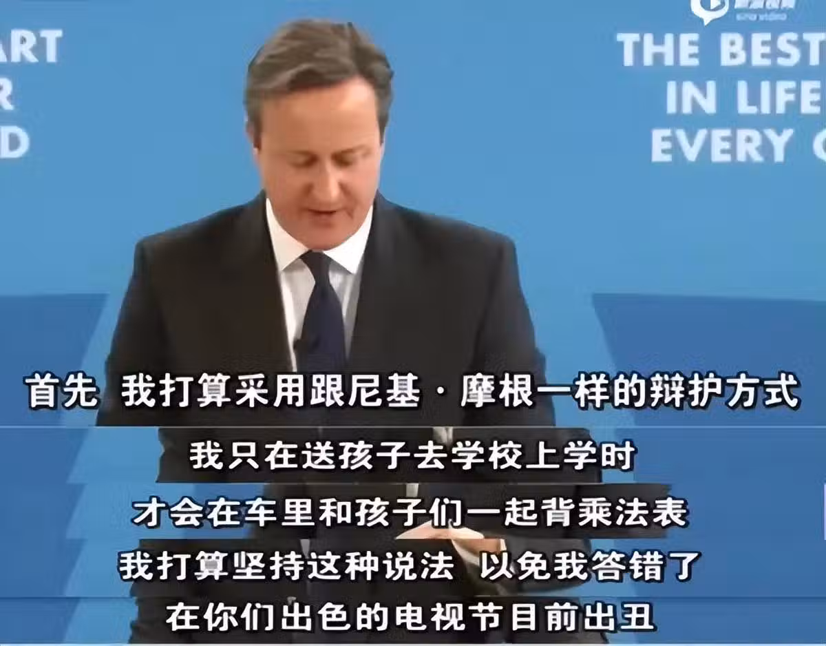 「首先我要強調一點的是我只有跟我妻子一起送我的孩子去學校的時候,才會背乘法口訣表!」