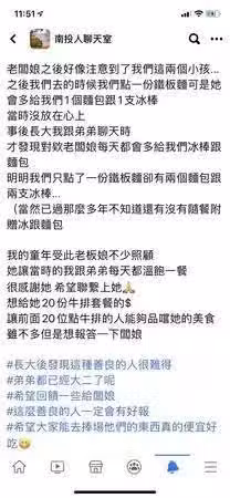 充滿溫情的貼文一出,也立刻引起許多在地網友的討論,並紛紛留言表示,「老闆娘人很好,造福南投民眾 」、「我也是這家店的常客,你懂得飲水思源,在造福更多需要幫忙的人,社會處處有溫暖 」、「天呀! 好感人 很棒的店家」,熱絡又溫暖的回應與祝福,也讓人再次見識到台灣人最溫暖的人情味。