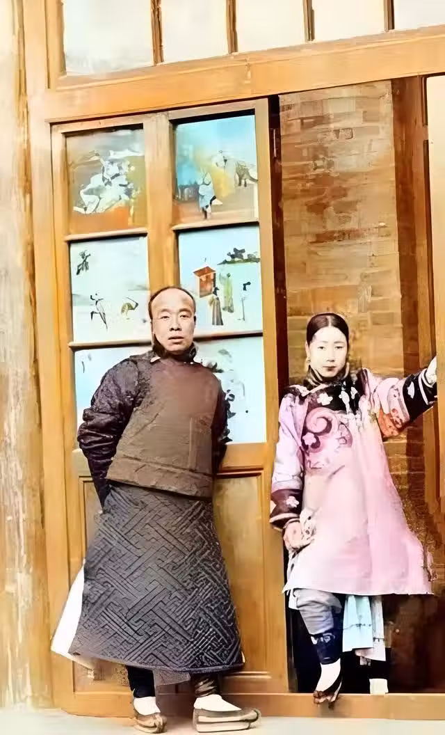 清朝時期,底層人民的生活場景。門外站著一個男人,門內站著一個名叫女子的妓院,一身奇裝異服。從他們的表情來看,這個男人應該是這裡的常客。