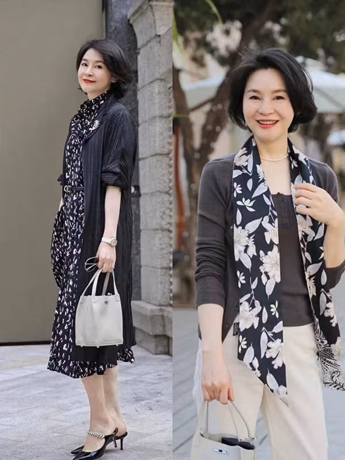 千萬不要覺得配飾僅僅只有裝飾的作用,其實它們還具備很好的實用性,比如 絲巾可以遮住頸紋、突出造型層次感;珍珠項鏈可以修飾鎖骨線條,讓膚色更加透亮; 帽子更是遮陽的不二之選,可以很好的 保護我們的肌膚狀態。