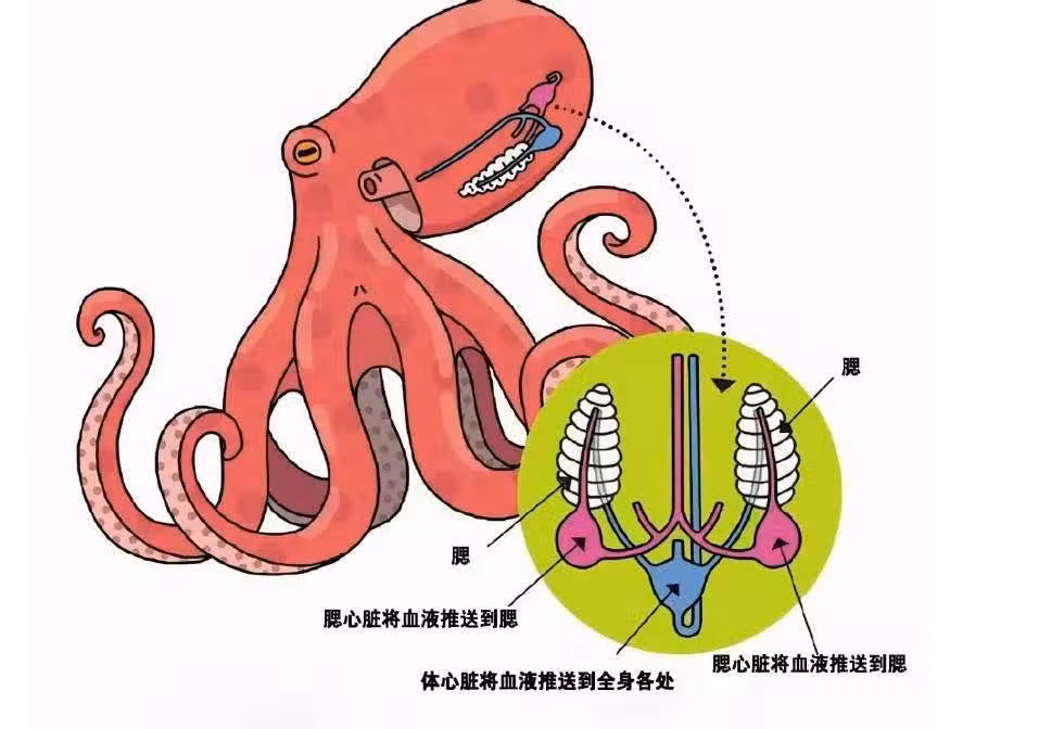 章魚雖然大腦數量很多,但是大腦運作的基本原理和人類是一樣的。大腦先發出指令,神經元進行傳輸,接收到信號的具體器官產生反應。