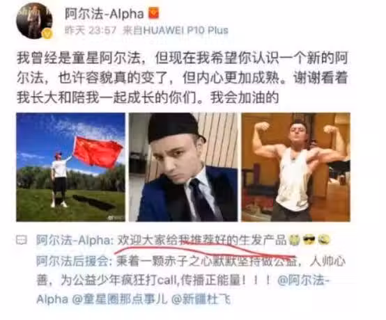 不知道後來的阿爾法是用了好的生髮產品,還是去做了植髮,現在的他,有一頭烏黑茂密的頭髮,而且一直堅持不斷的健身,瘦了不少。