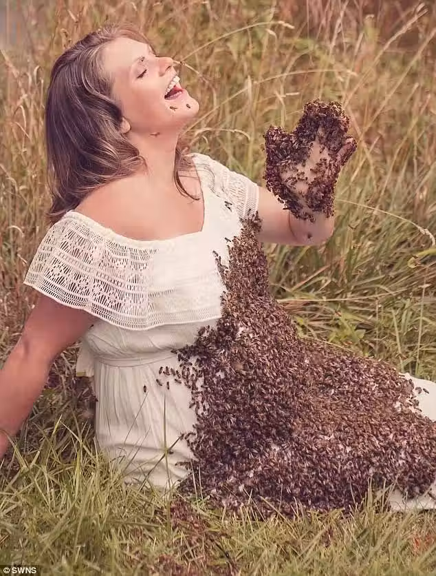 「讓2萬隻蜜蜂爬滿孕肚」拍獨特孕婦寫真!預產期前6天「寶寶卻不動了」:只被螫3次...