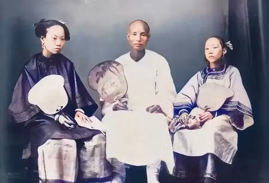晚清老照片:修腳匠埋頭苦幹,七個人睡一張床,通房小妾相貌平平