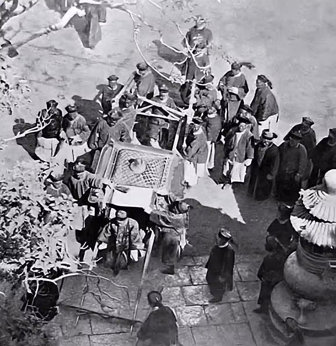 簡單來說,就是這天慈禧太后和光緒皇帝從保定乘坐火車出發前往北京永定門外馬家堡車站,之後去關帝廟、菩薩廟拈香。兩宮回鑾排場很大,一對在華經商的美國夫婦這樣描述: