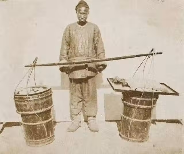挑扁擔賣點心的商販。