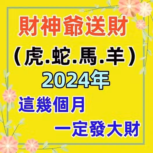 財神爺送財(虎.蛇.馬.羊)2024年這幾個月一定發大財