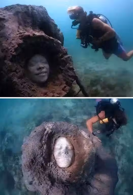 海底出現神秘「人臉」,潛水員湊近一看,立刻上岸報警!