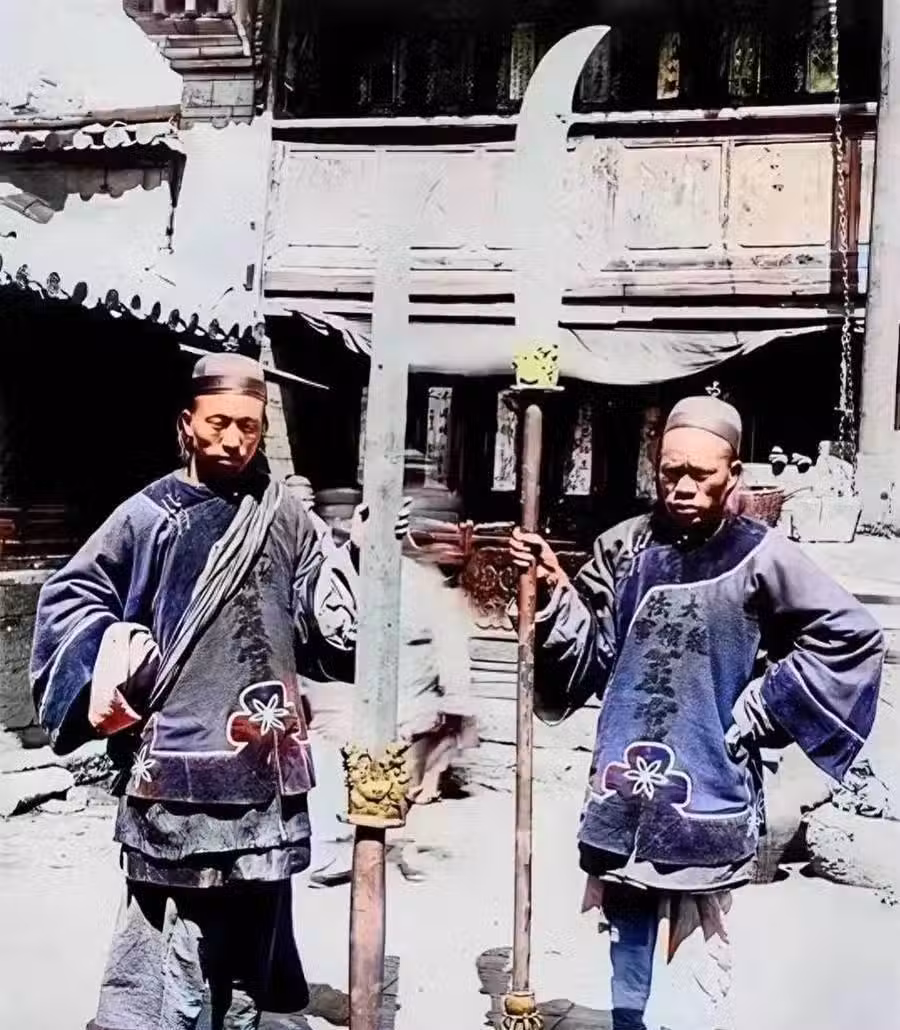 衙門衛兵,一看就沒啥本事,只對人民兇。扶著劍的那位,能拿得動那柄劍嗎?感覺自己一個人赤手空拳都能給他倆踹飛了。確實很難理解,歷朝幾百年居然服裝沒變化。特別是淸朝的服飾比前明朝醜陋太多了,居然幾百年毫無改變。
