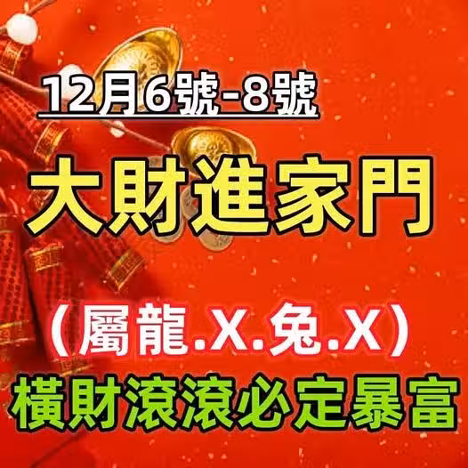 12月6號-8號大財進家門(屬龍.X.兔.X)橫財滾滾必定暴富