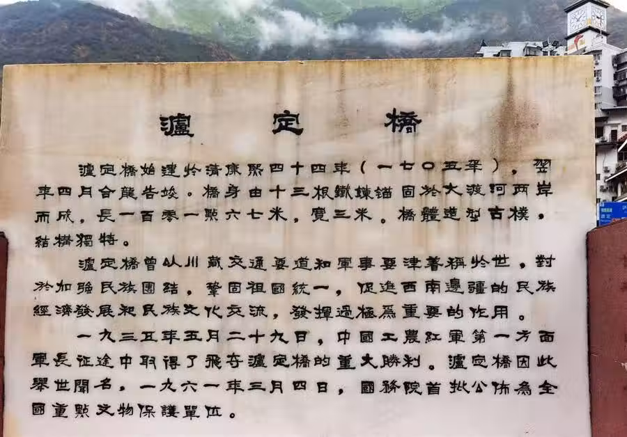 而在開通典禮上,康熙帝親書了「瀘定橋」三字, 並命以此橋命名的縣也改名為瀘定縣。