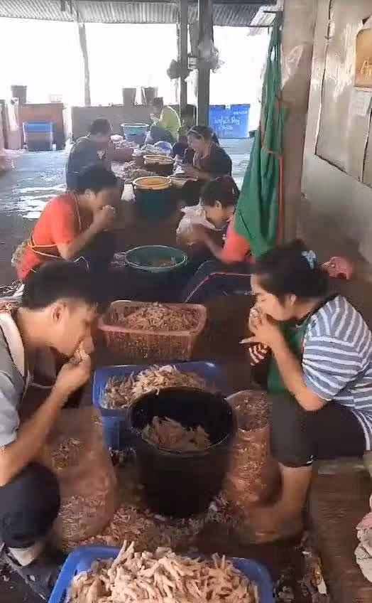 這些工人動作十分熟練,右手的雞爪還沒有去骨完畢,左手就已經往桶子裡抓,準備要來處理下一隻雞爪, 至於工人去除雞爪時嘴巴的那些「殘骸」則是直接吐在眼前的袋子,有時候還會不小心掉在地上,說不定還會掉進放置無骨雞爪的桶子裡。