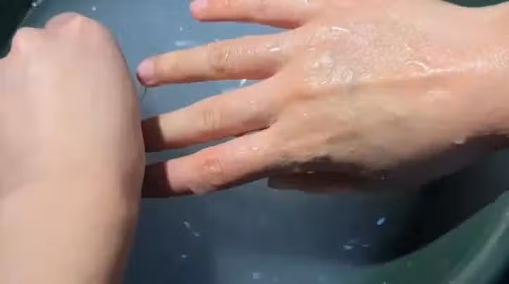 洗好後,用干凈的毛巾或者是紙巾擦乾手上的水分。擦乾水分後,我們現在來看一下手上,這個時候你自己就能感覺到手指在伸展和捏拳頭的過程中變得非常的遊刃有餘,再也不會出現特別緊繃的感覺。