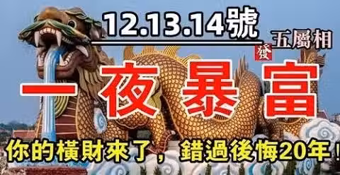 12月12.13.14號運勢旺必暴富,錯過後悔20年的屬相