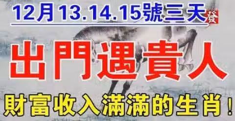 出門遇貴人,12月13.14.15號財富收入滿滿的生肖