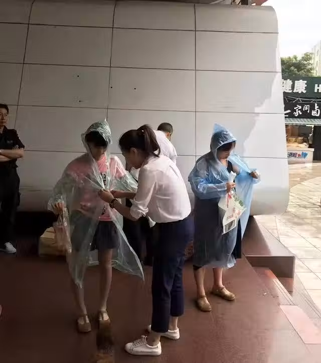 眼看著蘇一格身上沒有帶任何雨具,保安便好心的給她遞上了一件雨衣,可沒成想,蘇一格直接搖頭表示拒絕,並將手裡的包包一舉便頭也不回的跑進了大雨里。